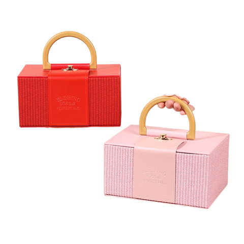 Caja de regalo de fiesta de boda, diseño de Castillo, con mango de pu redondo con cerradura