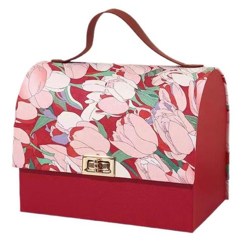 Boîte cadeau à main en cuir de tulipe française emballage de boulette de riz boîte à bonbons de mariage feuille emballage de sac à main Unique