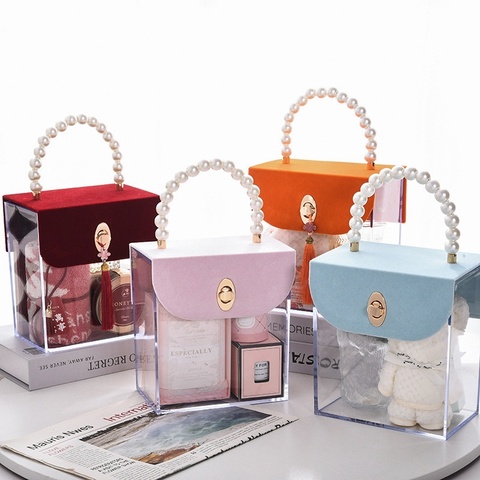 Mariage daim poignée transparent acrylique cadeau sac parfum vinyle boîte à main